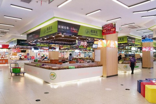 刚刚启用近一个月的新城市集,正是相城区高标准打造集贸市场的生动体现。新城市集位于苏州高铁新城朗诗蔚蓝邻里广场,是一个面积超7000㎡的现代化智慧市集。市集一层主要为蔬菜区,包含12个岛式摊位,二层主要为水产区、肉蛋区、水果区,此外周围商铺还包括黄天源、鑫震源、湘城爊鹅等特色餐饮门店。