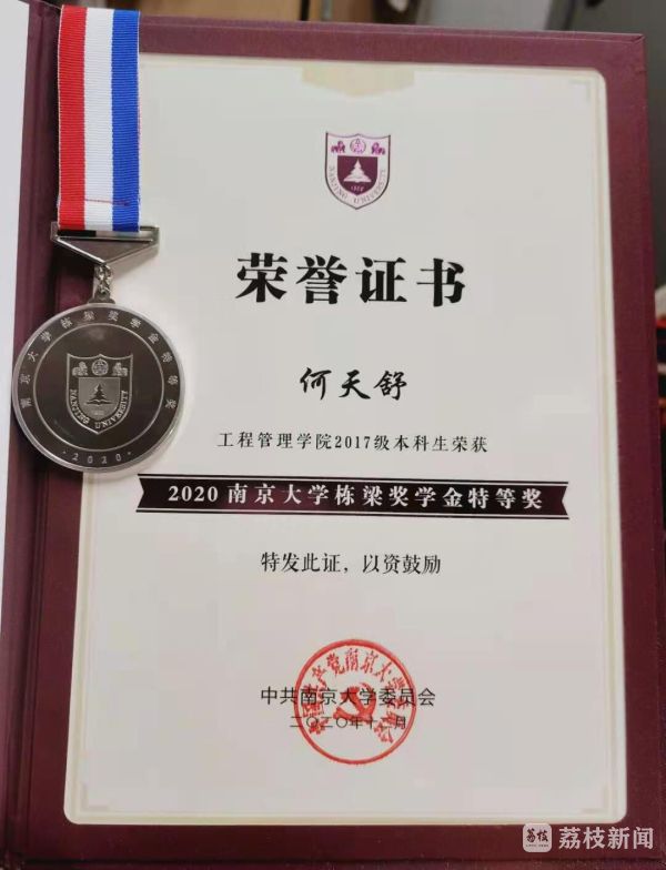 2017级实验班何天舒同学荣获南京大学栋梁特等奖