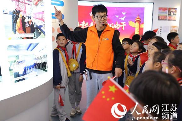 海州湾小学学生在连云区新时代文明实践中心参观主题展馆。黄楚钰摄
