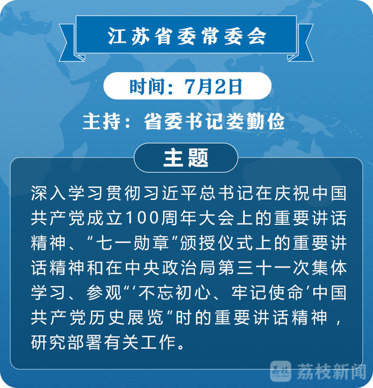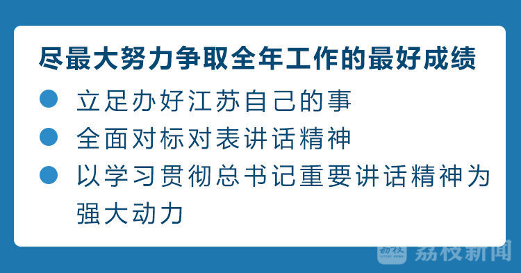 会议强调,要立足办好江苏自己的事,把习近平总书记“七一”重要讲话精神全面贯彻到推动江苏高质量发展的各项工作中去。要全面对标对表讲话精神,进一步深化理解总书记赋予我们“争当表率、争做示范、走在前列”的重大使命,自觉把江苏发展放在全国全球坐标系中去审视谋划,使各项决策部署更加符合中央精神、契合发展实际、顺应人民意愿。要以学习贯彻总书记重要讲话精神为强大动力,把握新发展阶段,贯彻新发展理念,构建新发展格局,全面深化改革开放,以更大力度更高标准构建自主可控、安全高效的现代产业体系,优势互补、融合发展的城乡区域发展体系,资源节约、环境友好的绿色发展体系,陆海内外联动、东西双向互济的开放体系,把中国特色社会主义的江苏实践推向前进。继续统筹做好常态化疫情防控工作,落实好“六稳”“六保”任务,加强安全生产工作和生态环境治理,持续改善民生,着力保持经济稳中加固、稳中向好态势,尽最大努力争取全年工作的最好成绩。