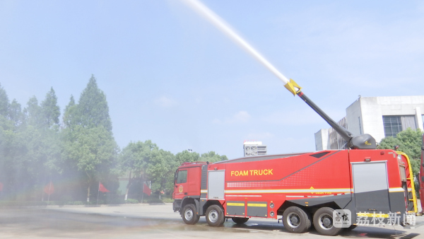 接下来,最激动人心的时刻到了,重型水罐泡沫车要向大家展示它的威力了,一道长长白色水柱划过天空。营员们顿时四散开来,欢笑声弥漫了这片绿荫,迎着光,天空中出现了一道若隐若现的彩虹。