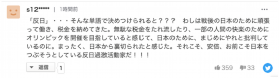 “‘反日’……用这样的单词来判定的话……? ? ?我为战后的日本努力工作,也纳了税。我觉得浪费了税金,只为了一部分人的快乐而举办奥运会......真是的,感觉被日本背叛了。安倍,你才是企图摧毁日本的反日激进分子! ! !”