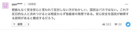 “没有根据就说安全安心,不反对才奇怪。国民不是笨蛋。这样就断定他们是反日的人,一如既往是独裁者的想法。有让国民认可的安全安心的解释说明,(国民)就会赞成(举办奥运会)了吧。”