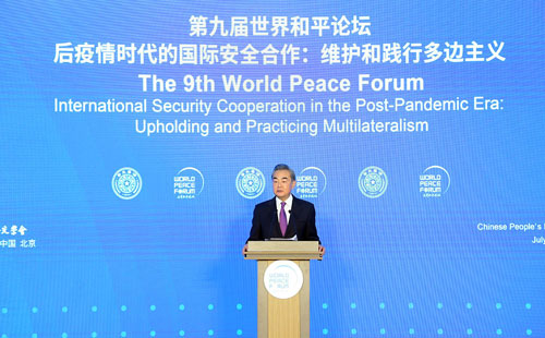 2021年7月3日,国务委员兼外交部长王毅在清华大学出席第九届世界和平论坛开幕式并发表主旨演讲。