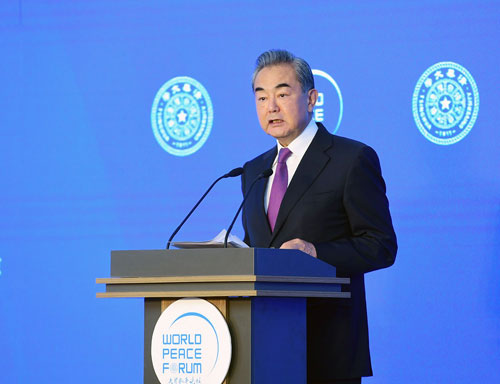 2021年7月3日,国务委员兼外交部长王毅在清华大学出席第九届世界和平论坛开幕式并发表主旨演讲。