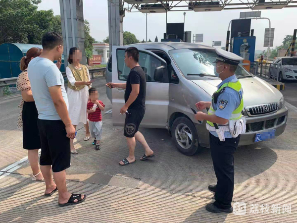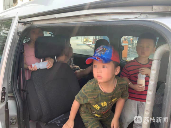 今天(7月2日)9时5分,徐州交警支队三堡公安检查站民警在徐州南收费站执勤时,发现一辆苏C牌照的小客车内人头攒动,拉开车门只见七座的客车里面坐了10个人,4名大人6名几岁大的儿童。