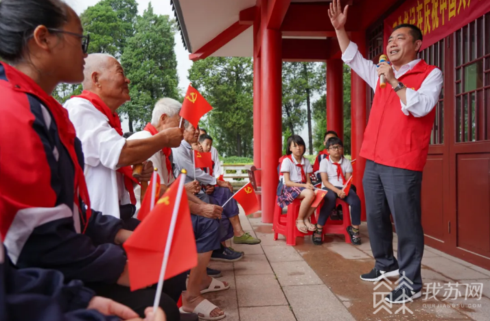 7月3日,潇潇雨声中,全国基层理论宣讲先进个人、海安市委宣传部常务副部长刘万春来到苏中七战七捷纪念馆、新四军联抗烈士陵园,为50多名新老党员代表、少先队员们作习近平总书记在庆祝中国共产党成立100周年大会上的重要讲话精神宣讲。