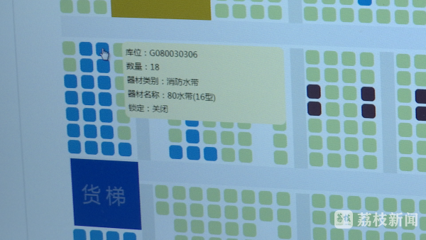 蒋大伟一边演示,一边介绍:“系统上可以直观地看到货物,到底存了哪些东西,哪些货位上还有货。比如这里是货物的二层,鼠标点上去可以看到,上面显示消防水带,直径80毫米的水带、16型的,数量有18盘。”