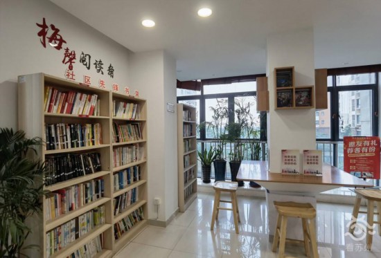 位于教室外的走廊尽头有一个梅馨阅读角,阅读角中的书籍可供家长和学生借阅。若家长们有需求,也可以在阅读角旁的座椅上稍作休息,等待自己的孩子。