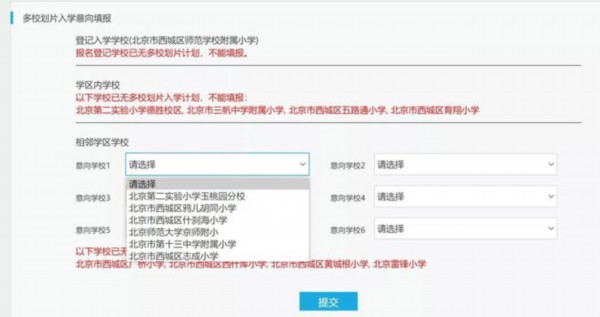 731之后的房本雷更大,房本或者户籍是731之后的,要去网上填报志愿,限时两天时间。填报系统显示不管你买的是哪个学校的学区房,基本只有渣校可选。德胜、月坛这两个最均衡的学区,本区内学校全部不能选,直接派到相邻学区。