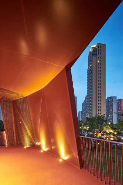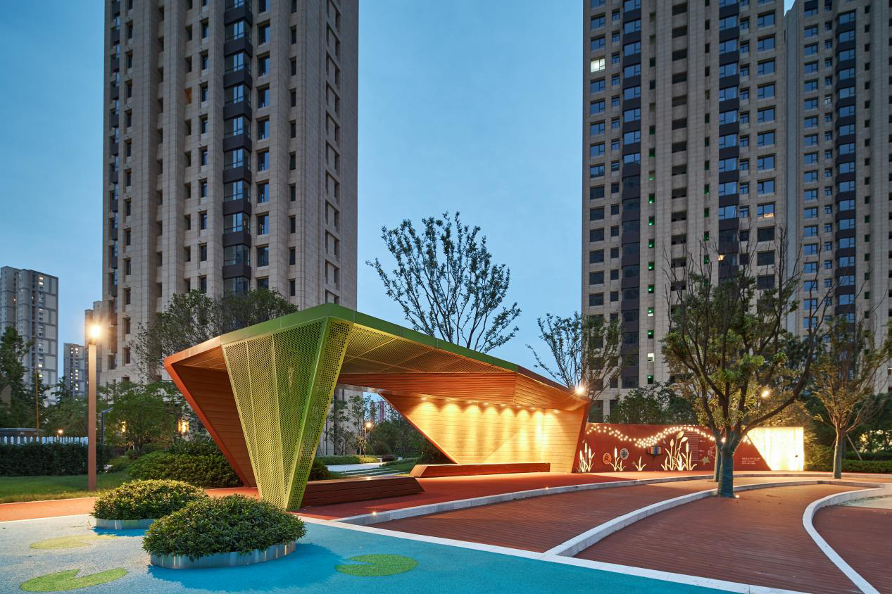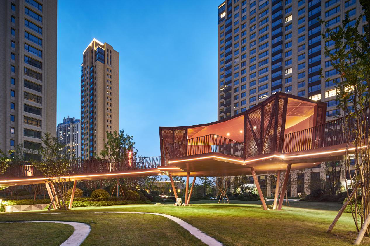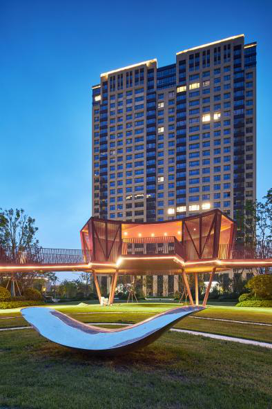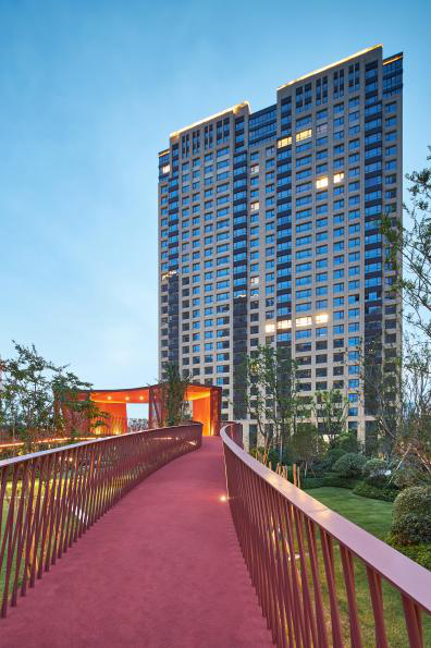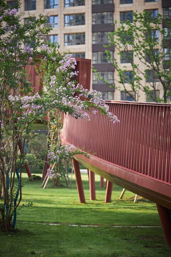 “给我印象最深的就是红色的廊桥,我个人更喜欢前卫大胆的设计,我也见过很多小区,但像金茂府在景观上用了非常前卫的色彩和大胆的设计去诠释,这一点是非常能抓住我的。”一座流线于空中的廊架,像极了天空的彩虹。南北向达150米,东西向超100米,如此大尺度的景观空间,在别处真的很难寻觅,难怪业主如此震撼。