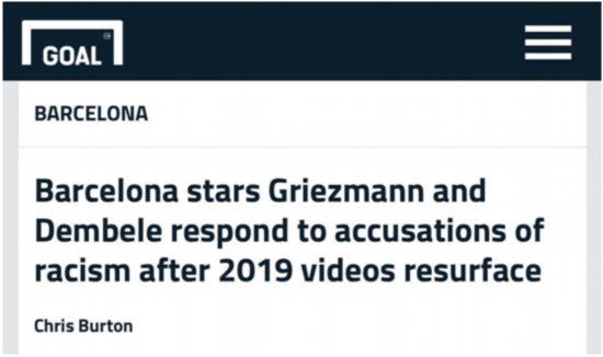 《南华早报》说,视频显示,期间登贝莱似乎对格里兹曼说:“所有这些丑陋面孔(的出现),只是为了让你玩实况足球,你不感到羞耻吗?”他还说,“这是什么落后的语言?”“你们的技术在你们国家里算不算先进啊?”该视频于上周五在社交媒体上流传后引发巨大争议。有媒体称,“社交媒体视频显示奥斯曼 登贝莱‘嘲笑亚洲技术人员’后,法国国家队卷入种族主义风暴。”