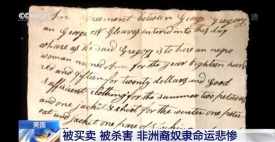 除了奴隶买卖,当时还存在奴隶租借。这份文件记录了一名非洲裔女奴被奴隶主乔治·格利夫斯租借给别人的交易,记录显示,这名非洲裔女奴在被租借期间,租借人只为她提供最基本的衣服。