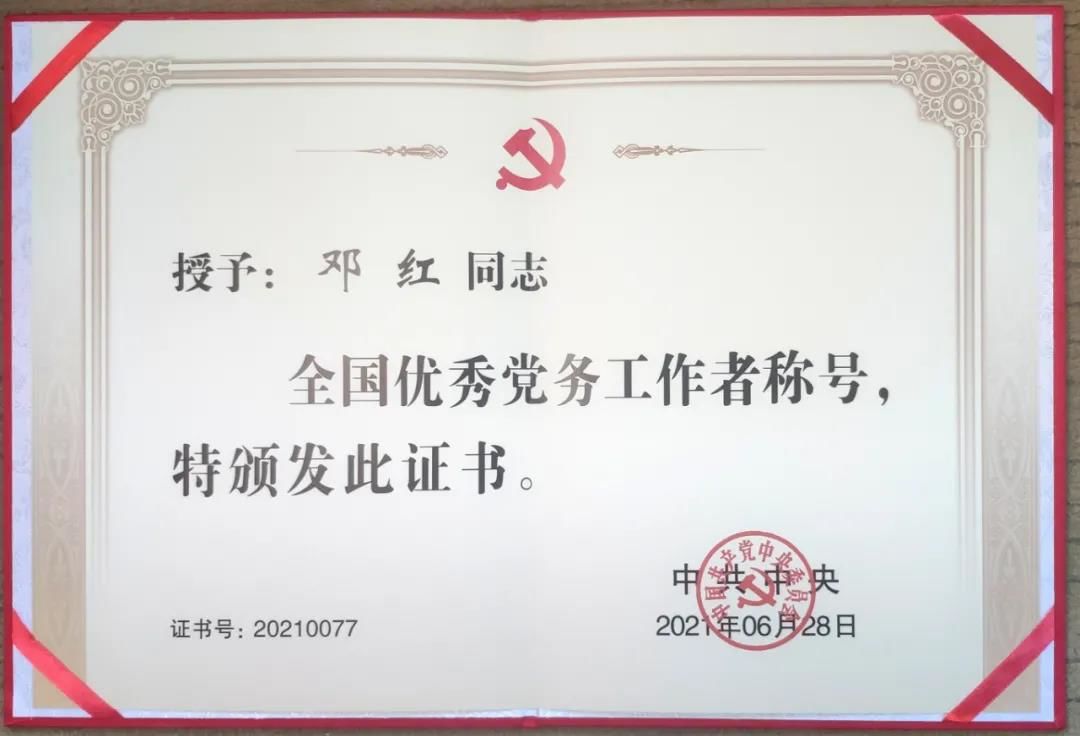 载誉归来,记者7月2日第一时间采访了她。“在建党百年之际获得全国优秀党务工作者称号是我的莫大荣幸,这枚沉甸甸的奖章,既是一份荣誉,也是一份责任,它让我更加坚定了为群众办实事、做好事、解难事的信心。”邓红说。