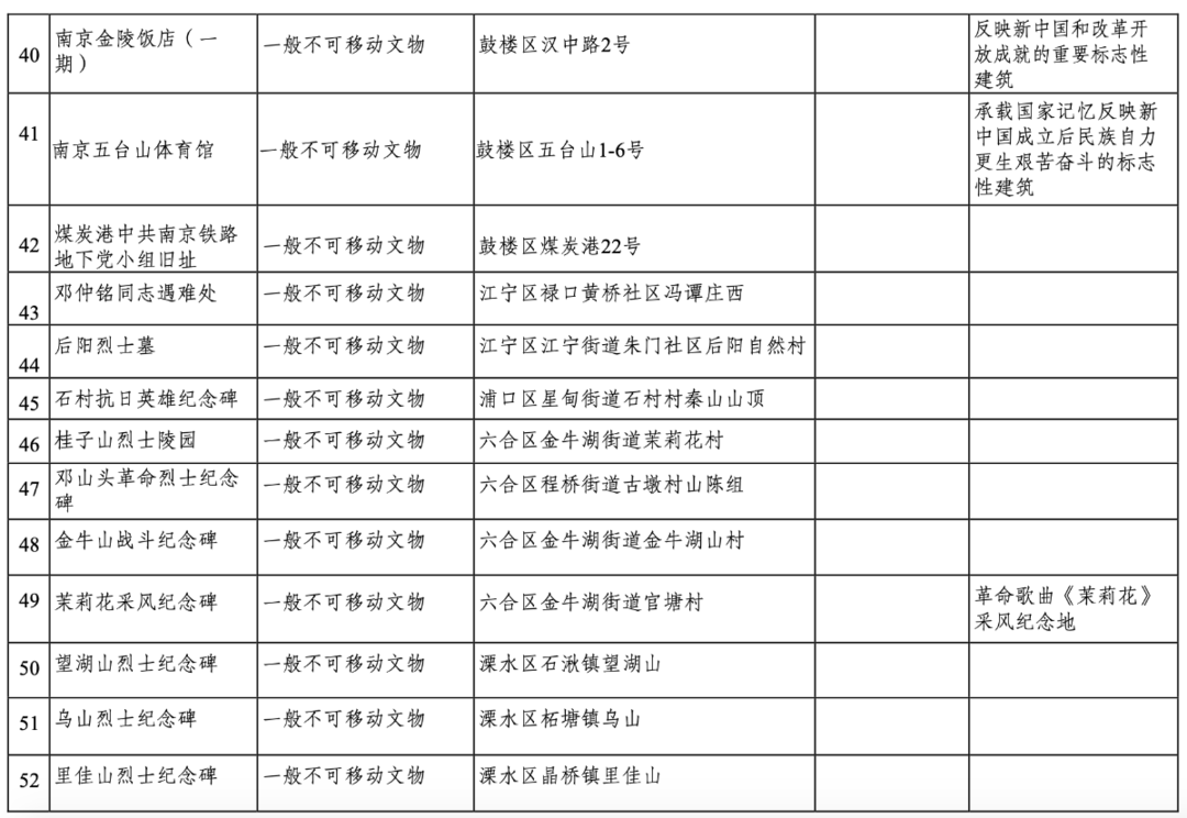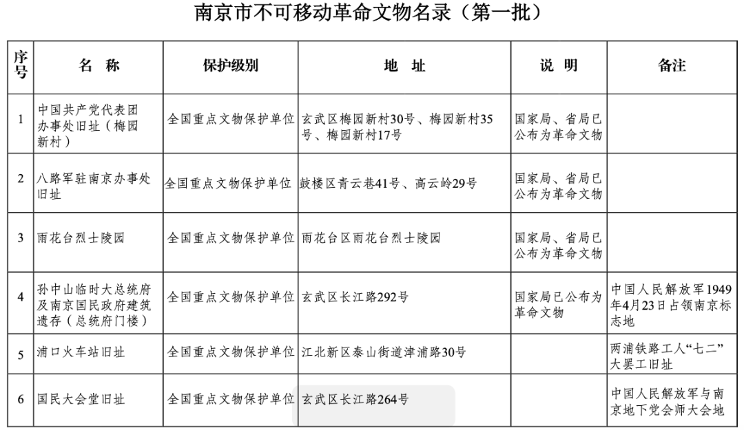 今年以来,南京市文化和旅游局在充分采纳专家、相关单位和各区政府意见的基础上,对全市范围内不可移动和可移动革命文物进行了核定、评选,形成了南京市革命文物名录(第一批)。