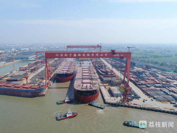 在江苏扬子鑫福造船有限公司的码头,1000吨龙门吊正缓缓升起吊钩,平板车载着设备往来如梭,世界先进的平面分段生产流水线井然有序,码头旁正出坞的船舶与江面上试航归来的船只交错前行。工人们带着安全帽在各自的岗位上忙碌着,汗水顺着脖颈浸湿了衣服。“7月,我们计划交付2条32.5万吨矿砂船,虽然天气炎热,还是要加紧生产。”扬子鑫福造船有限公司机电车间工人陆长清说。