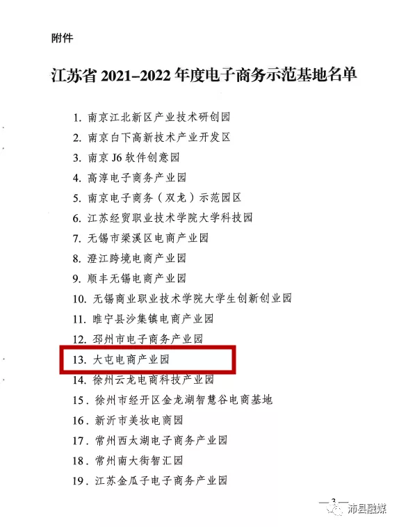 日前,省商务厅公布2021—2022年度江苏省电子商务示范基地名单,其中沛县大屯电商产业园榜上有名,快跟小编一起来看看吧~