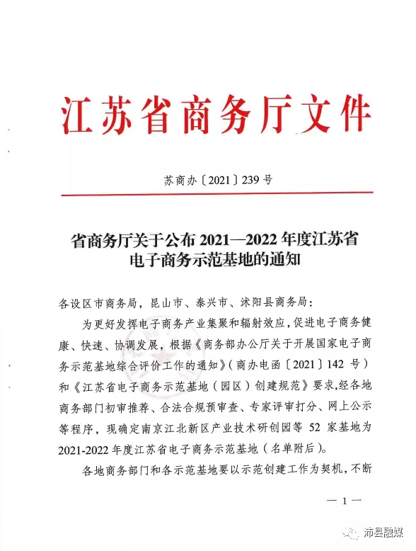 据了解,为更好发挥电子商务产业集聚和辐射效应,促进电子商务健康、快速、协调发展,根据相关要求,省商务厅组织开展了2021-2022年度江苏省电子商务示范基地创建工作,经各地初审推荐、合法合规预审查、专家评审打分等程序,确定了江苏省2021-2022年度电子商务示范基地名单。