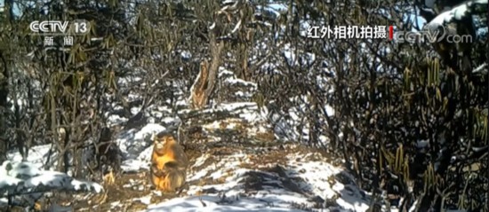 这段拍摄于今年1月的视频中,雪地里,一只可爱的金丝猴坐在地上晒太阳,另一只金丝猴从旁边的树上爬下来,慵懒地躺在它前方不停地挠痒,十分可爱。