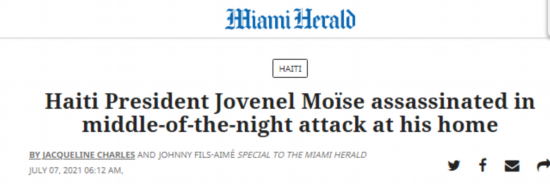 《迈阿密先驱报》:海地总统若弗内尔·莫伊兹半夜在家中被暗杀