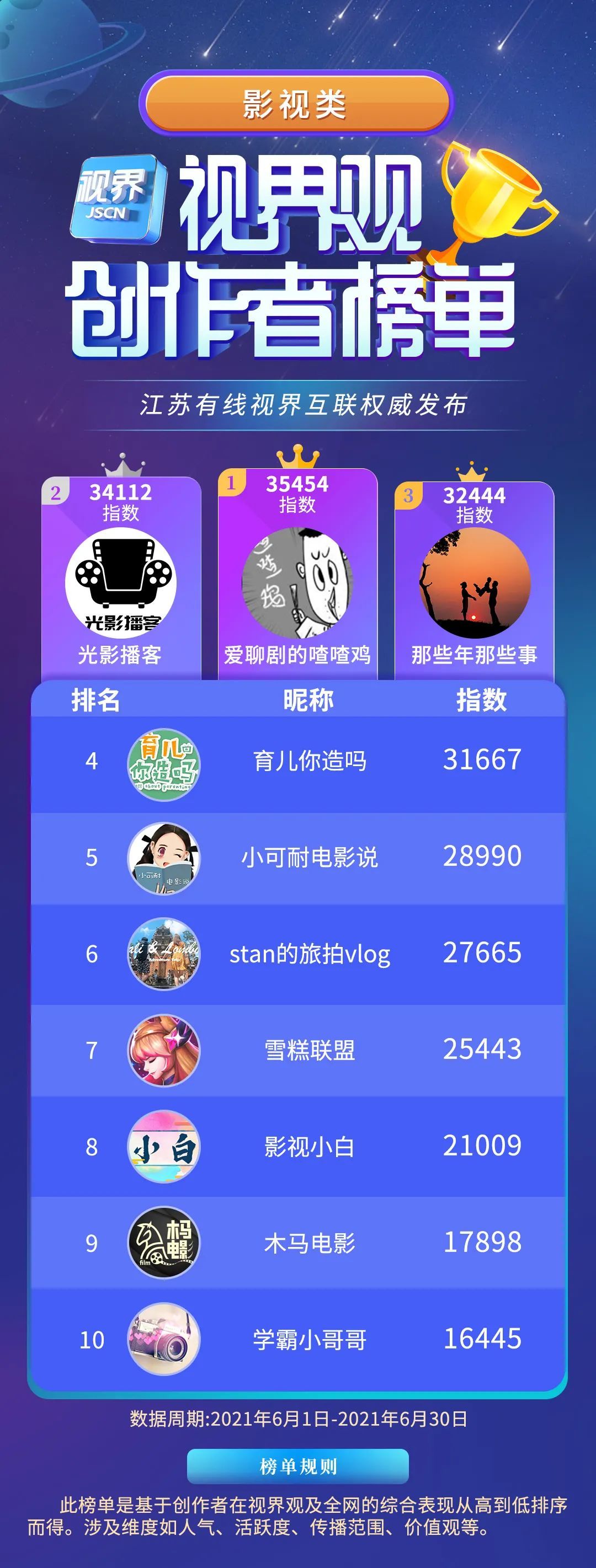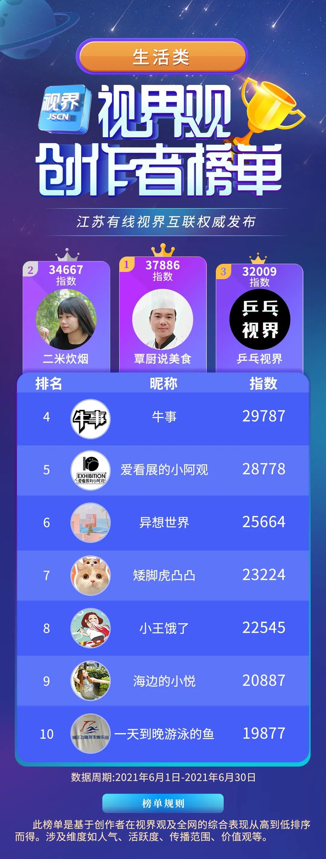 7月7日,江苏有线旗下视界观APP正式发布「繁星计划」4.0《视界观创作者榜单》六月版。《榜单》将通过今日头条、新浪微博、腾讯新闻、新华日报交汇点、荔枝新闻等多家主流媒体渠道进行全网宣发传播。