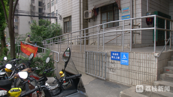 南京市玄武区的丹凤新寓小区也有5栋高层建筑,这个小区除了在电梯内安装智能报警系统以外,物业还想出了"土办法",阻止电动车入内。