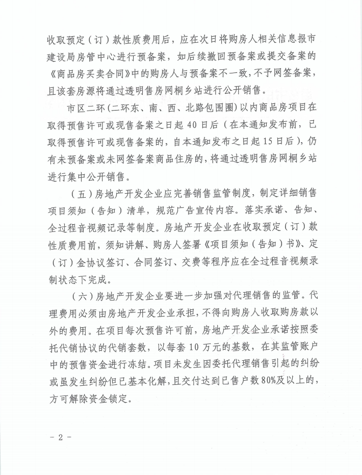 通知指出,为进一步落实房地产市场平稳健康发展城市主体责任,防范房地产领域系统性风险,坚持“房子是用来住的,不是用来炒的”定位,对桐乡市商品住房销售管理加强规范。此次公布的文件主要包括三个方面,一是加强商品住房销售管理;二是完善合同撤销备案机制;三是集中公开销售流程。