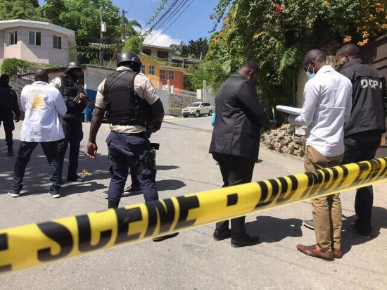 当地时间2021年7月7日,海地太子港,海地总统莫伊兹在私人寓所中遭袭身亡。图为工作人员在现场进行调查。
