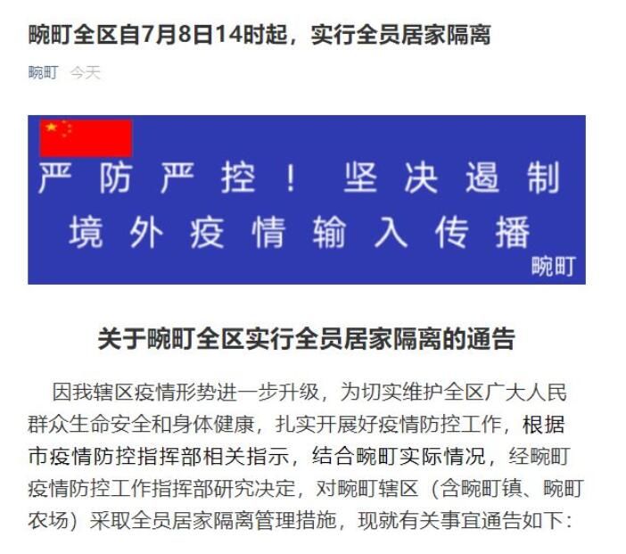 一、从2021年7月8日14时起,对畹町辖区实行封闭管理,所有居民居家隔离。解除时间视疫情另行通知。