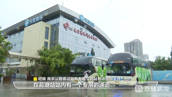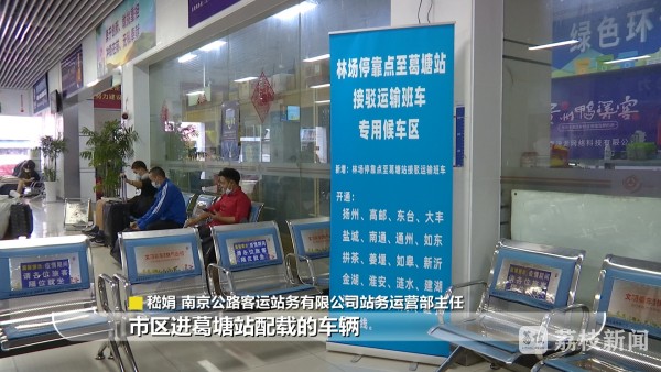 南京公路客运站务有限公司站务运营部主任嵇娟介绍说:“我们有接驳车在林场的停靠点,每一小时一班车。这班车运行大概15分钟到20分钟到葛塘站。在葛塘站站内有一个专用的通道和专用的候车区域,然后旅客就可以零距离换乘到市区进葛塘站配载的车辆。”