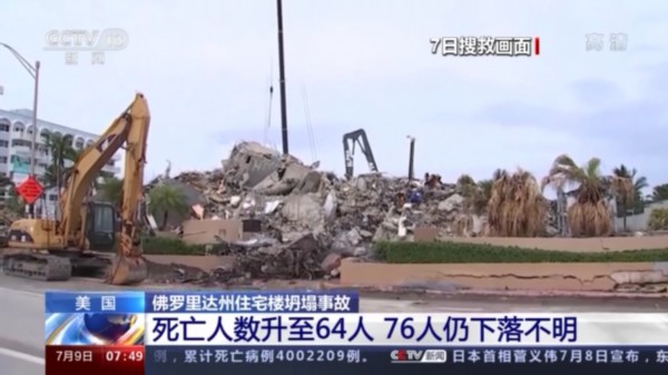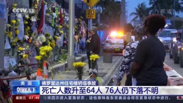 美国佛罗里达州迈阿密-戴德县县长丹妮拉·莱雯·卡瓦当地时间7月8日晚间宣布,佛罗里达州住宅楼倒塌事故的死亡人数已上升到64人,仍有76人下落不明。目前,搜救行动已经停止。