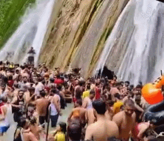 海外网7月9日电《印度快报》8日报道称,随着新增新冠确诊病例数下降,印度许多邦开始放松疫情封锁限制。近日,北阿坎德邦一个热门旅游景点的火爆画面引发外界关注,视频显示成群结队的印度人挤在瀑布下洗澡。
