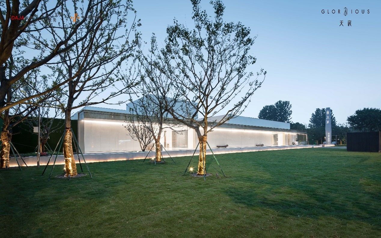 步入示范区,流淌的艺术气息便纷至沓来。示范区入口,一方清泓水景,会同树影斑斓,将艺境邀请入门,犹如江核由动转静,由寻常至艺术的开合处,静谧之美引人入胜。随后,一幕极简建筑跳脱眼帘,全面屏玻璃与现代建筑为艺术浑然化合。此刻,不经然间,已被艺术的高度叹服。示范区内,一方光影映透建筑,落向直面天空的大树,艺术生活方式在此有了全新落款。
