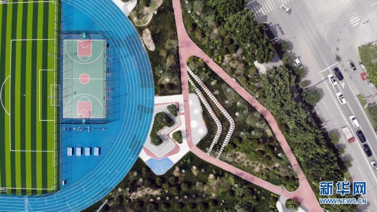 这是7月9日拍摄的容城县体育公园(无人机照片)。