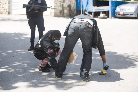 7月7日,在海地太子港,工作人员在海地总统莫伊兹的住所旁开展调查。新华社 图