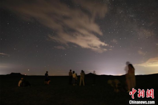 图为游客在漆黑的草原上看星星。 张圆 摄