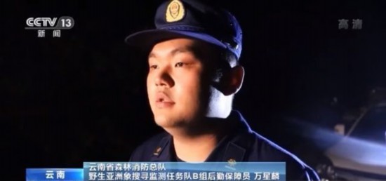 云南省森林消防总队野生亚洲象搜寻监测任务队B组组长 张斯捷:当时象群失踪前的位置记录在化念镇和新平县的一个交接处的山脉。这个山脉呈南北走向,在这个山脉的正中间只有一条高速公路。