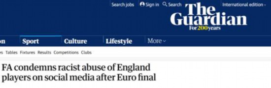 据报道,英格兰球员马库斯•拉什福德、贾登•桑乔和布卡约•萨卡都是黑人,他们因在点球大战中未能得分,成为种族歧视言论的目标。