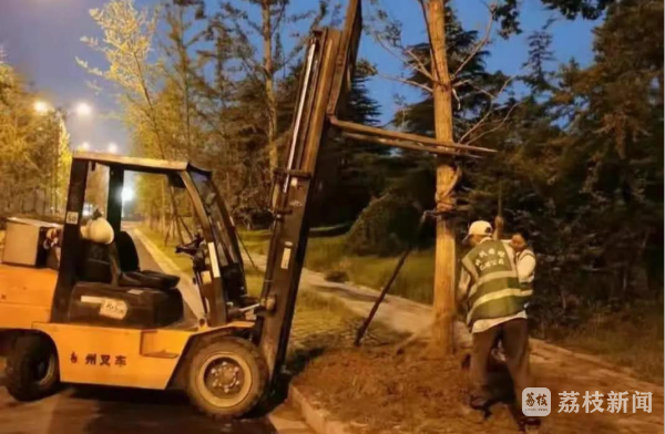 险情就是命令,责任就是使命。为保障市民的人身和财产安全,减少次生灾害事故发生,保障道路畅通,邳州市园林绿化服务中心立即启动应急处置预案,统筹安排车辆、机械、人员连夜冒雨奋战。