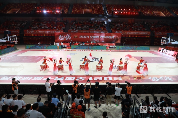 7月11日晚,2021全国男子篮球联赛(简称NBL)在盐城盐南体育馆拉开帷幕,来自全国各地区的14支队伍,300多名篮球运动员将在这里展开激烈较量。中国篮球协会副主席许闽峰,中国篮球协会竞赛部部长叶庆晖,盐城市政府副市长费坚等参加开幕式。