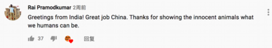 “中国做得好!谢谢你们向这些无辜的动物展示了人类的善意。”