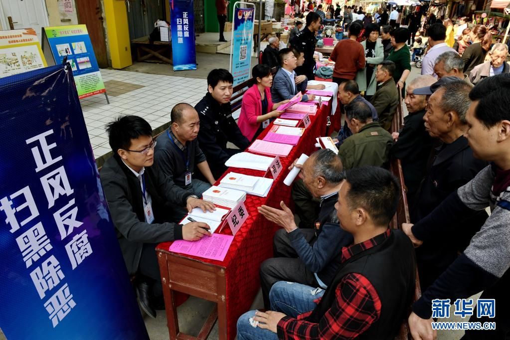 2018年4月1日,福建省建瓯市接访工作人员在小桥镇墟日上接受群众来访。新华社记者 张国俊 摄