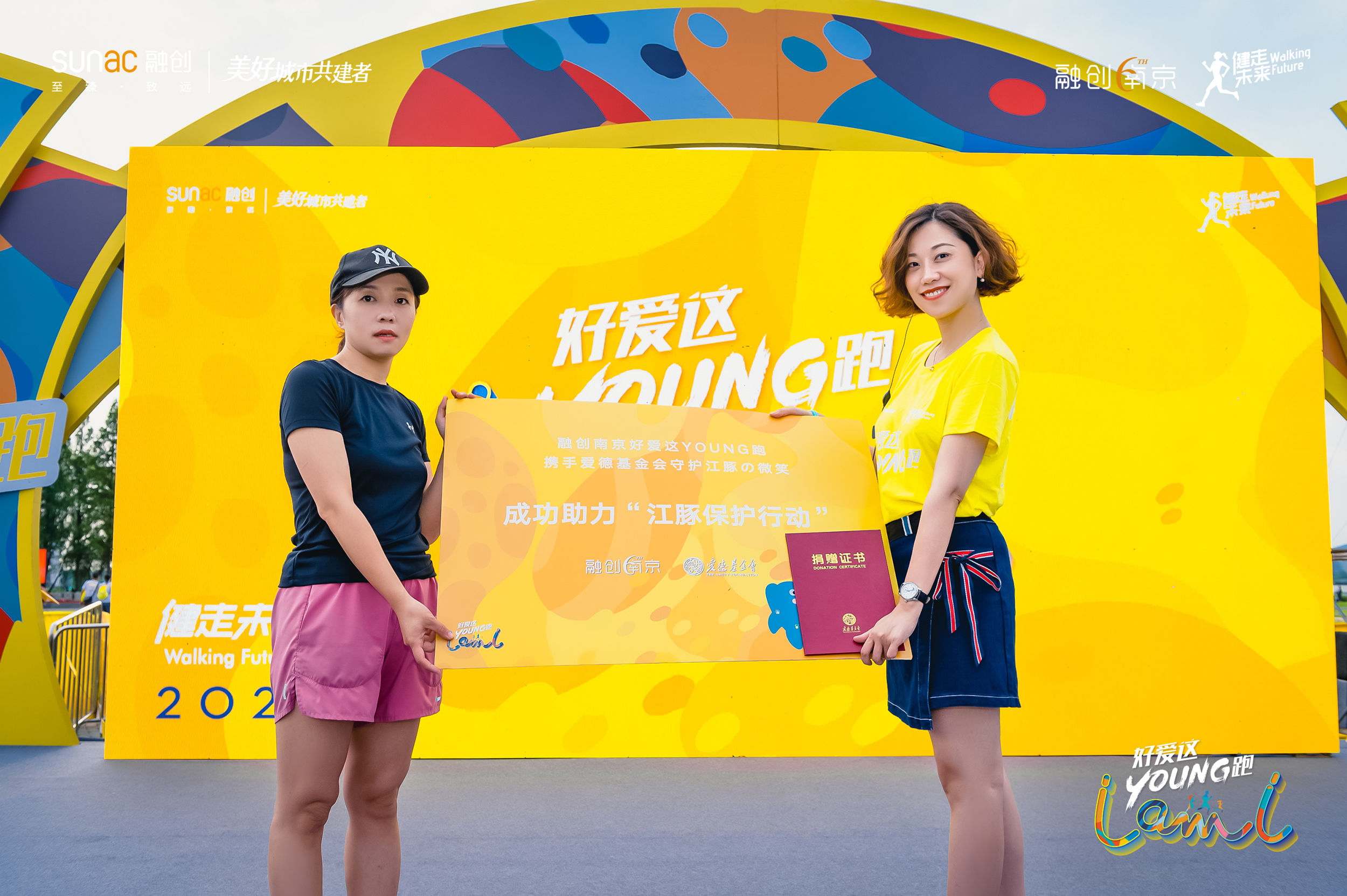 洋溢着青春活力的5公里赛道跑出运动的快乐,也激发着每一位参与者的公益心。今年的健走活动,融创南京携手爱德基金会解锁100万步绿色成就,助力江豚保护行动,共同“守护江豚の微笑”。