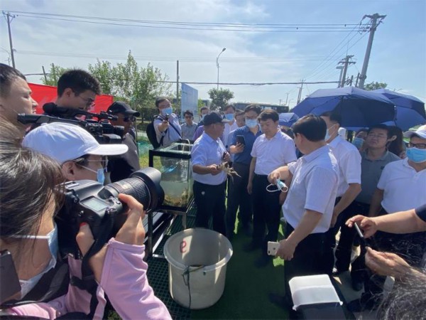 活动当日,在苏州市阳澄湖现代农业产业园,农业农村部渔业渔政管理局一级巡视员李书民一行详细了解了中华绒螯蟹“阳澄湖1号”新品种的选育情况。中华绒螯蟹“阳澄湖1号”是苏州市相城区与中国水产科学研究院淡水渔业研究中心合作开发的新品种,具有生长速度快、规格品质高、防病抗逆强等特点。