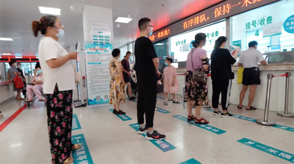 门诊区域,地面的一米线标识时刻提醒着大家按序排队,无论是挂号、检验、取药、候诊都应保持安全社交距离,就诊时实行“一医一患一诊室”措施。“医院成立了一支志愿者队伍,全员参与,在门诊、药房、CT室等区域协助患者及其家属办理相关手续,同时维持就诊秩序。”市人民医院宣传科科长助理秦瑀介绍。
