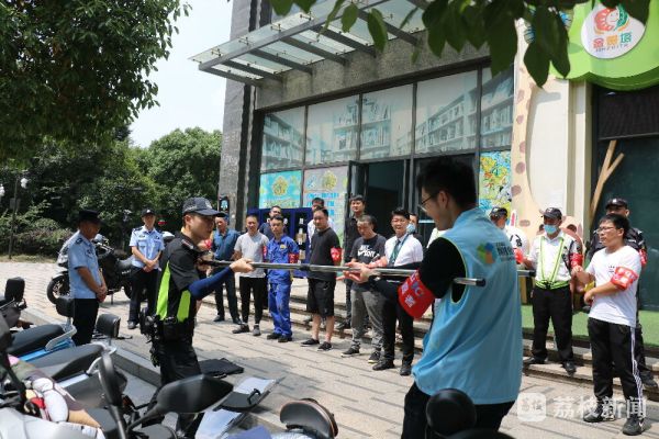 “叮、叮、叮……” 南京江北新区一商场内,一键报警终端警笛响起,听到报警后,商场内多家商户带着防爆叉、橡胶棍和盾牌第一时间赶到现场。今天(7 月 14 日)下午,南京市公安局江北新区分局“平安守望岗”推广工作现场会警情实战演练活动正在进行。此次演练模拟的警情是商场有人寻衅滋事,听到报警后“平安守望岗”志愿者和民警迅速赶到现场成功处置。