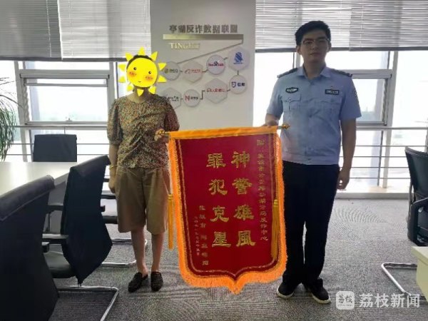 7月15日上午,市民陶女士专程来到盐城市公安局亭湖分局送上一面写有“犯罪克星,神警雄风”的锦旗,并连声向民警表示感谢:“原本以为被骗的钱要打水漂,没想到我的血汗钱还能追回来,感谢警察同志......你们真是我们的忠诚守护者!”。