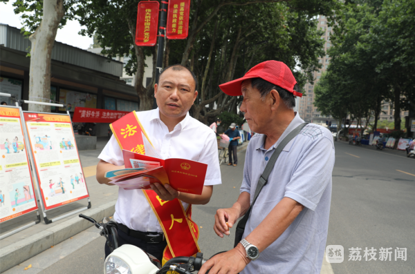 “光听说《民法典》是国家新颁发的法律,到底里面都有哪些新的法律规定,我还真的不知道。今天听你们给我一解释,我懂了好多,我要回家给老伴也讲讲。”近日,在新沂市政府东侧的《民法典》宣传现场,市民王大爷边看宣传资料边认真地说道。