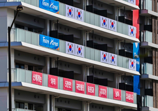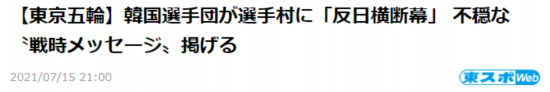 《东京体育》:韩国代表团在选手村张贴“反日横幅”,写着引发不安的“战争时期的信息”