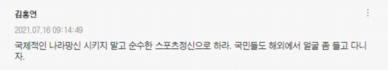 “看来是不知道奥运会要远离政治的啊。大韩体育会的相关人士真让人寒心”